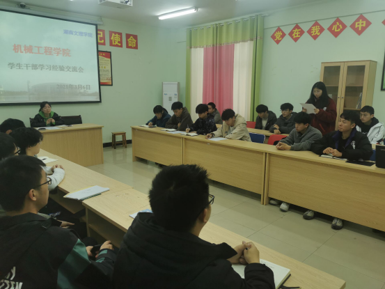 3月7日上午10点,机械工程学院学生干部学习交流会在机械楼427召开, 学院党总支副书记刘双老师,辅导员张群英老师出席本次会议,此次参加会议的学生干部主要是上学期期末考试有挂科的同学。