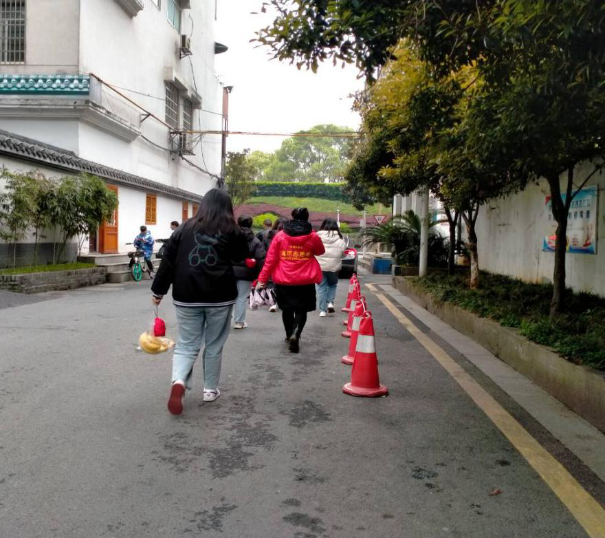 这次是走访空巢老人的志愿服务活动,志愿者们在社区负责人的带领下提着事先准备好的慰问品,前往爷爷家。