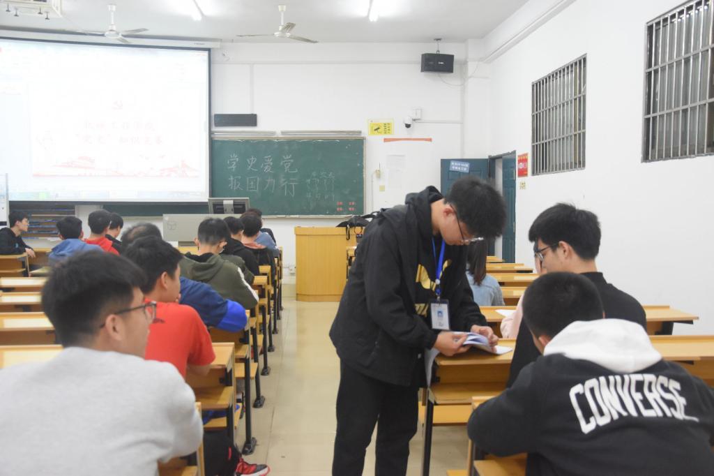 为扎实推进“学史爱党,报国力行”主题教育,进一步引导青年学生深入贯彻习近平新时代中国特色社会主义思想,培养青年大学生爱党、爱国、爱社会主义的思想情感,牢固树立社会主义核心价值观,纪念中国共产党成立100周年,机械工程学院于4月16日晚上7点在机械楼6楼举行党史竞赛,本次比赛以笔试的形式进行,学院200多名学生参加笔试。