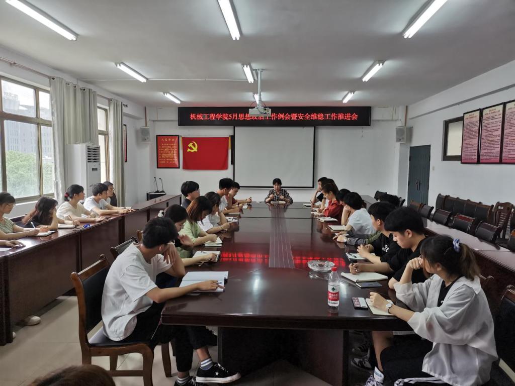 5月12日中午12:30,机械工程学院在401会议室举行“机械工程学院5月思想政治工作例会暨安全维稳工作推进会”,学院党总支副书记刘双、学工办全体老师,学院全体学生干部参加本次会议。