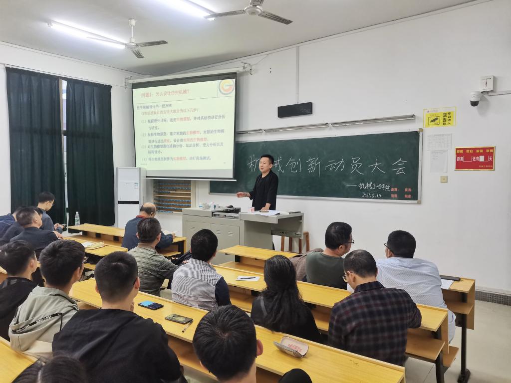 5月19日晚上7点,机械工程学院在机械楼610举行机械创新设计大赛动员会,学院领导班子、竞赛指导老师、各年级有意参赛选手参加。会议由李叶林老师主持。