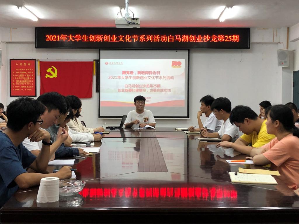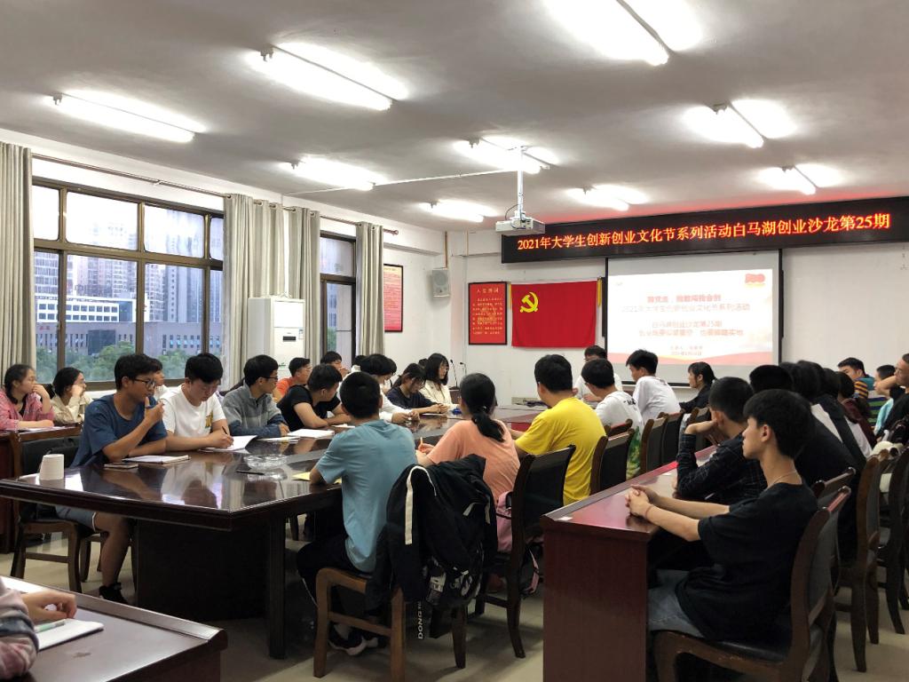5月24日晚上7点,机械工程学院举办2021年大学生创新创业文化节系列活动白马湖创业沙龙第25期,张群英老师及有志于创新创业的学生参加本次沙龙活动。主讲人是机械工程学院机自13101班优秀校友马剑平。
