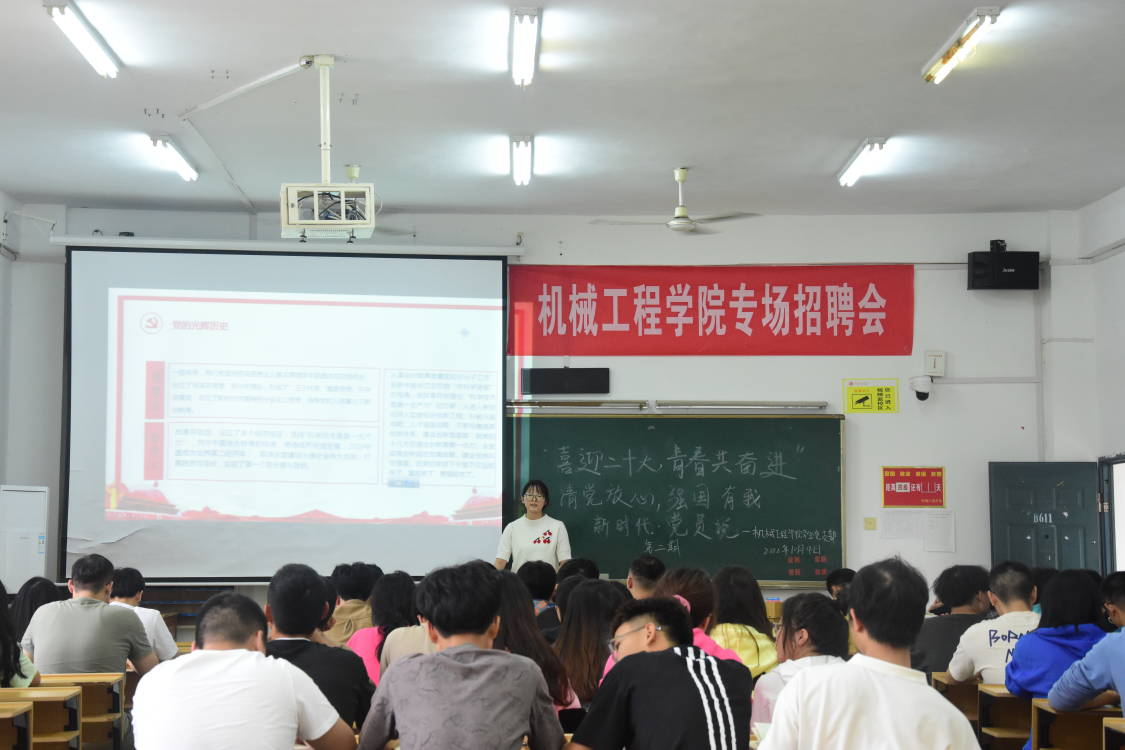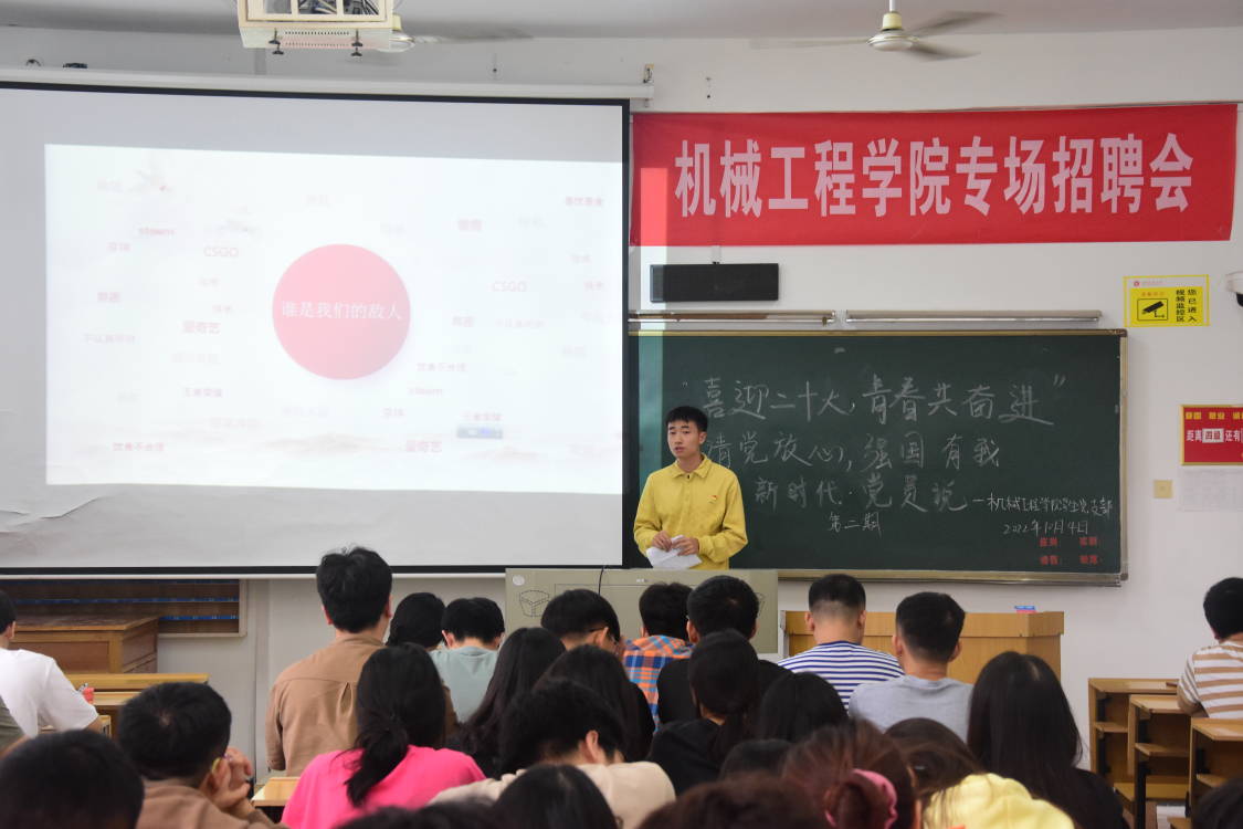 在党的二十大胜利召开之际,我院以党课宣讲的方式缅怀革命先烈,传承红色基因,永续红色血脉。10月4日中午,机械工程学院在E4-B611开展主题为“喜迎二十大,青春共奋进——请党放心,强国有我·新时代党员说”第二期宣讲活动,学生支部党员及2020级部分入党积极分子参加活动。