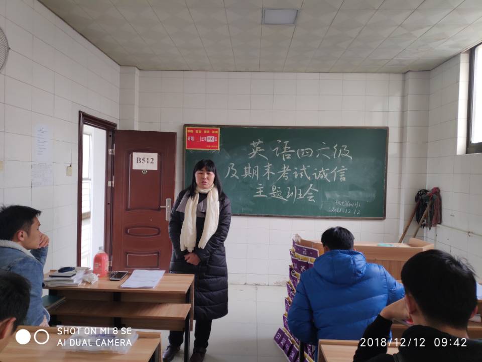 (本网讯)英语三四六级及期末考试临近,为了切实推动我院学风建设工作和学生安全教育工作,进一步培养学生诚信品质,端正考风,严肃纪律,营造公平、公正、诚实守信的考试氛围。我院近期陆续召开了诚信考试主题班会和班团例会,向同学们强调诚信考试和安全问题的重要性,并组织同学们以班级为单位签订《诚信考试承诺书》,做到“明考纪、严考风、零考风”。希望同学们积极踏实应考、扎实学习、诚信考试、考出好成绩!