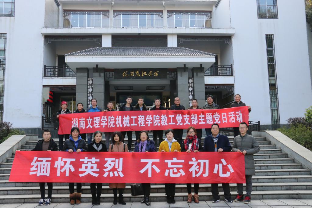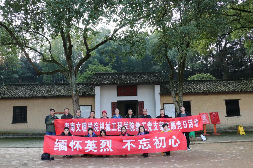 本网讯(通讯员 彭亮)为进一步加强党组织的凝聚力和战斗力,充分发挥党员的先锋模仿作用。2018年15日下午至16日,由机械工程学院党总支书记马晗初老师带队,机械工程学院教工党支部开展了“缅怀英烈,不忘初心”的主题党日活动,学院全体党员同志参加了本次党日活动,一起前往红色教育基地——杨开慧故居纪念馆和任弼时故居纪念馆,瞻仰先贤风采,缅怀先辈功绩,接受革命传统教育。