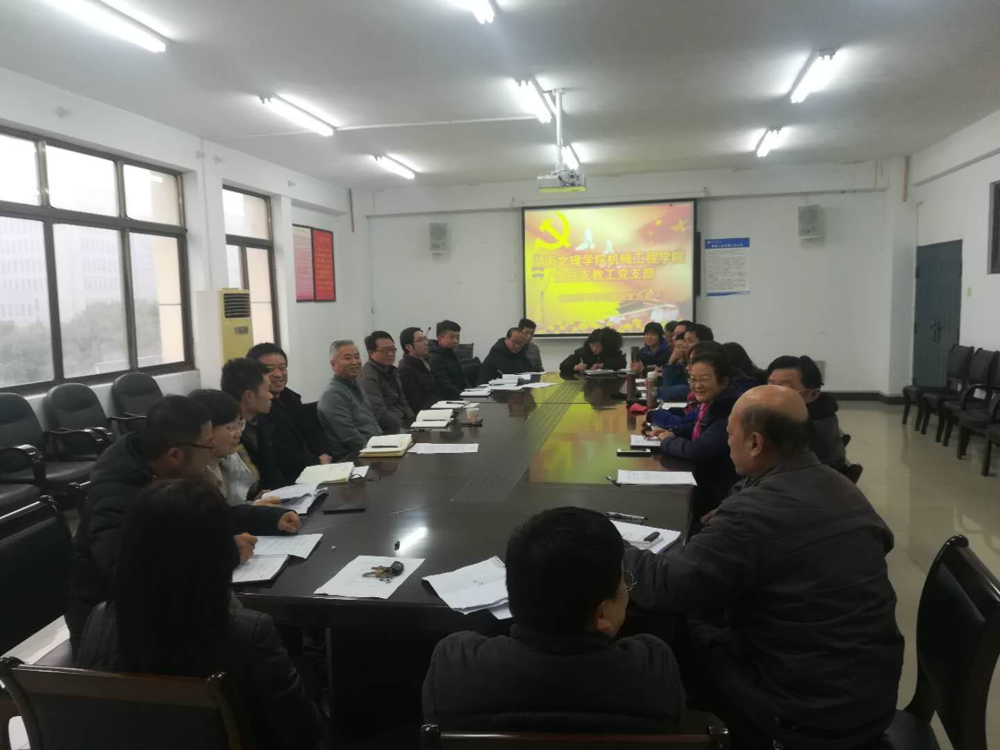 本网讯(通讯员 彭亮)2018年12月26日下午3点,机械工程学院教工党支部2018年下半年组织生活会在机械楼四楼大会议室召开。学校党委书记谷正气同志以普通党员的身份参加了此次组织生活会,首先谷正气同志认真对自身作了自我批评,提出整改措施。接着,全体党员教师结合2018年一年度的工作生活情况,分别开展批评与自我批评,提出自身一年来发现存在的问题,并制定相关整改措施,以优秀党员的标准来不断提升自己的思想道德水平及工作能力。最后,谷正气同志进行了总结补充:1.学院获批建设的“全国高校党建工作标杆院系”要从点做起来,从小事做起来,从组织生活会做起来;2.目前学校的中心工作是申硕和课堂革命,这也是校院两级管理的主要目标任务,在课堂教学上,要注重理念、手段、方法的创新,真正做到课堂革命;3.学院要协调解决好教学、科研、行政管理、学生思想道德教育等之间的矛盾,每一个点都是相互作用、相互影响、相互协调,使学院在整体和部分之间的耦合协同作用发挥到极致!