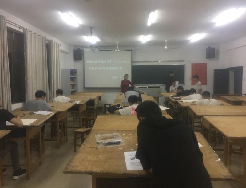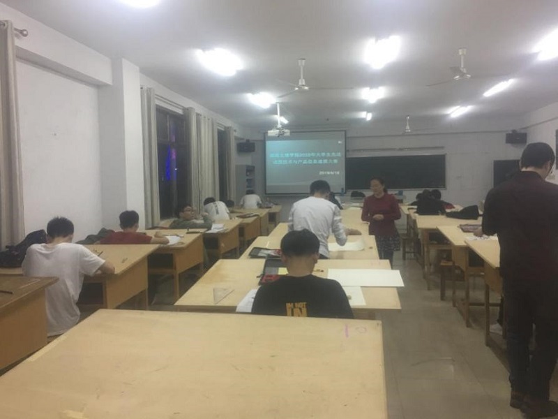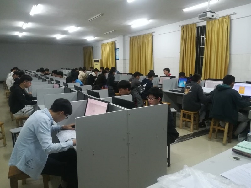 本网讯(机械工程学院)2019年4月16号晚上7:00-10:00,机械工程学院在E4-B208举行了第十二届校内大学生先进成图技术与产品信息建模创新大赛校的计算机绘图,2019年4月18号晚上7.00-9.00,在E4-B501、503举行了校内第十二届大学生先进成图技术与产品信息建模创新大赛尺规绘图。本次参赛学生共52名,学院刘文清老师、徐戎老师现场指导。