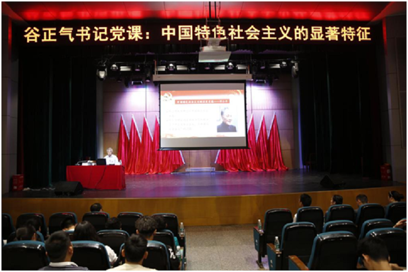 本网讯(机械工程学院)4月24日晚七点十分,党委书记谷正气以“中国特色社会主义的显著特征”为题,采取视听结合的方式,用PPT加视频在音乐厅给我院第二十期153名入党积极分子上了一堂别开生面的党课。参加此次党课培训的还有土建学院教师党员、各学院党总支副书记,团总支书记,副校长刘春晖主持了本次党课。
