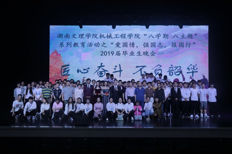 晚会由学生干部们表演的舞蹈《小鹿乱撞+隔壁泰山》激情拉开序幕,开场舞后,机械工程学院院长吴晓教授致辞,吴院长深情表达,大学四年里,同学们在湖南文理学院机械工程学院勇往直前追求你们的人生梦,一直是老师关注你们的理由,也是你们在职场上所向披靡的动力!老师看到了你们四年来的不懈努力,经历了一段不悔青春,每位同学就是一颗璀璨的星。吴院长深情寄语毕业生,愿同学们们知晓,青春的魅力,在于它沁人心脾的芬芳、甘甜,也在于它时而闪过的苦涩、幽怨,没有遗憾的青春终不完整,好似没有繁星点破的夜空。最后,吴院长祝同学们毕业快乐,前程似锦,人生旅途一帆风顺!