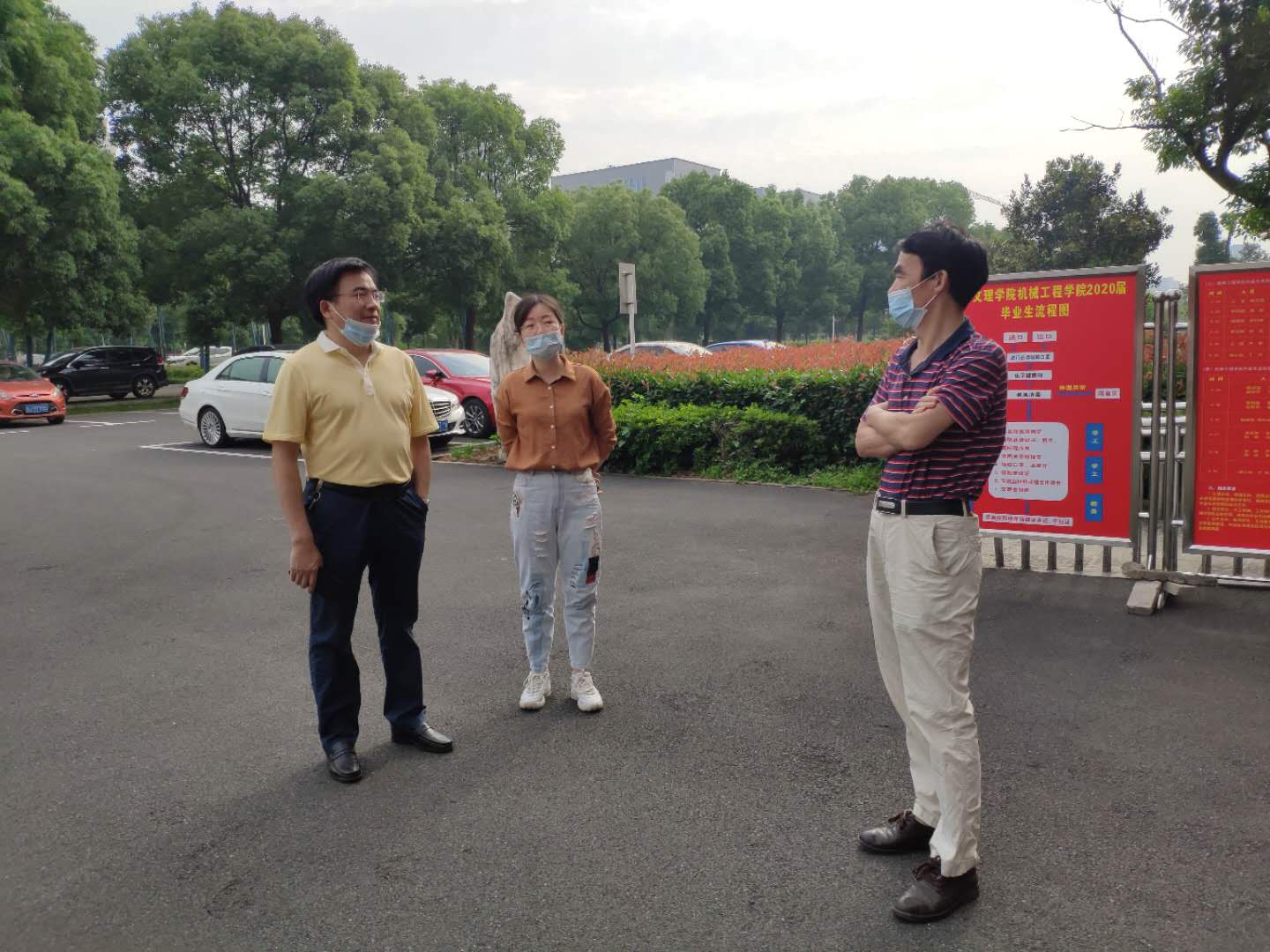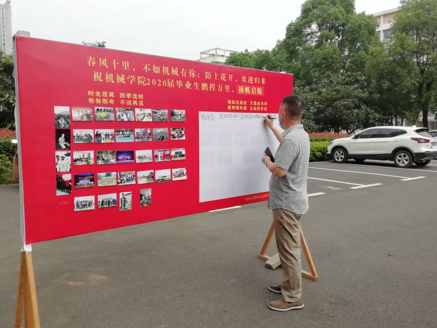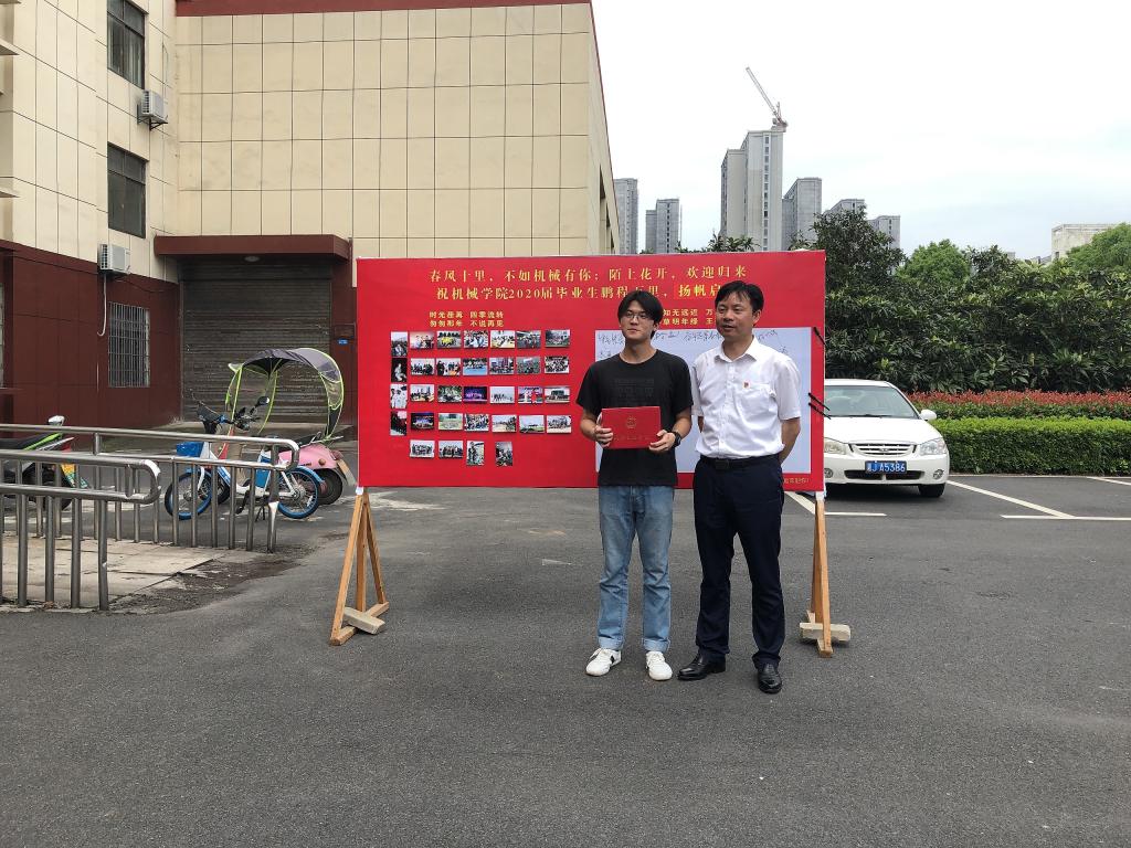 你走时寒风萧瑟,你来时春暖花开。机械楼的每一缕阳光都折射出师生再见的明媚。云”答辩,“云”毕业,都说今年的毕业生都是哭着毕业的。为了缓解毕业生的焦虑、增强毕业生的仪式感,龙校长亲自走进学院,与我院学子亲切合影,并不忘嘱咐毕业生;我院为毕业学生搭起“毕业墙”,以“墙”寄“离愁”,以“墙”化“相思”,以“墙”道“珍重”,并贴心为学生准备“百事可乐”“橙汁饮料”等饱含寓意的小礼物;我院彭亮老师辗转于各宿舍之间贴心地为学生送餐……点点滴滴,所有的热烈都将化为母校对你的深深祝福。