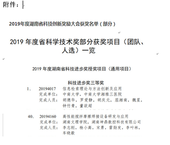 我院李志刚副教授主持的科研项目《高性能搅拌摩擦焊接设备研发与应用》喜获湖南省2019年度科技进步奖三等奖