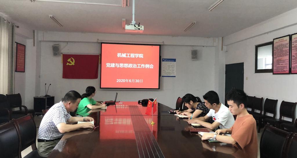 6月30日上午,学院召开党建与思政工作例会,推进学院“不忘初心牢记使命” 主题教育“回头看” 整改落实工作、迎接全国党建工作标杆院系创建结题验收准备工作、师生思政工作、辅导员队伍建设和学院安全稳定工作。会议由院党总支书记马晗初主持,学院党总支副书记刘双、学院教工、学生支部书记和全体辅导员参加了会议。