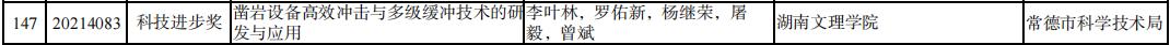 我院李叶林博士主持的《凿岩设备高效冲击与多级缓冲技术的研发与应用》项目荣获湖南省科技进步三等奖。