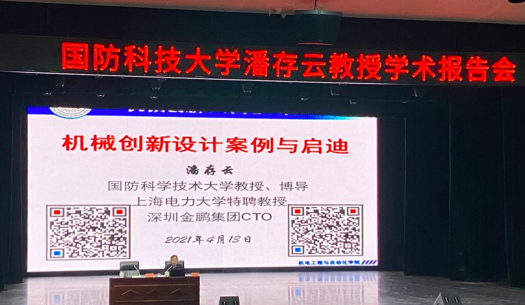 4月13日下午2:30,国防科技大学潘存云教授在艺术中心作题为《机械创新设计案例与启迪》的精彩学术报告,机械工程学院800余名师生参加了学术报告会,报告会由学院院长吴晓主持。
