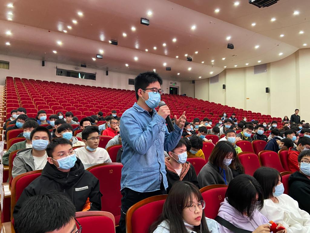 现场互动环节,潘存云教授认真解答了在场师生的提问,现场反馈十分热烈。他勉励广大同学要“创新无止苦作乐,发明有章趣为先”,认真学习理论知识,培养专业兴趣、满怀存疑精神;要永葆“责任心、好奇心、好胜心”,不惧失败、勇于创新,共同推动我国机械制造业的创新发展。