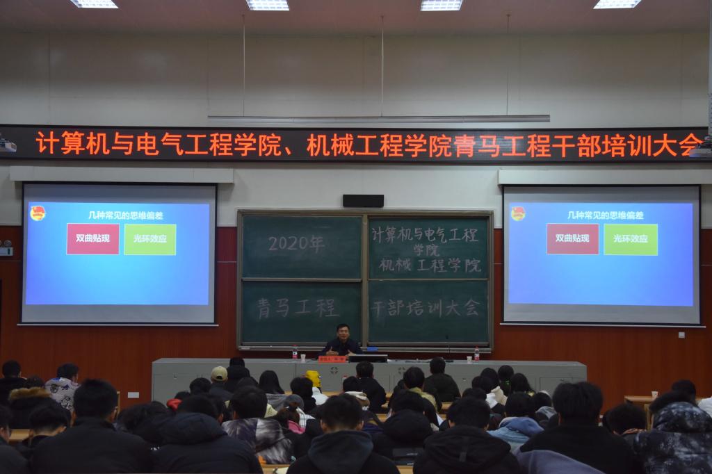 12月15日19点,机械工程学院联合计算机与电气工程学院在东附楼C107举办青马干部培训大会,特邀校团委肖攀书记作“努力掌握和善于运用科学思维方法”的集中授课培训。机械工程学院党总支副书记刘双老师、计算机与电气工程学院党总支副书记刘哲希老师、学工办彭亮老师及学院全体学生会干部参加此次培训,本次培训由刘哲希老师主持。