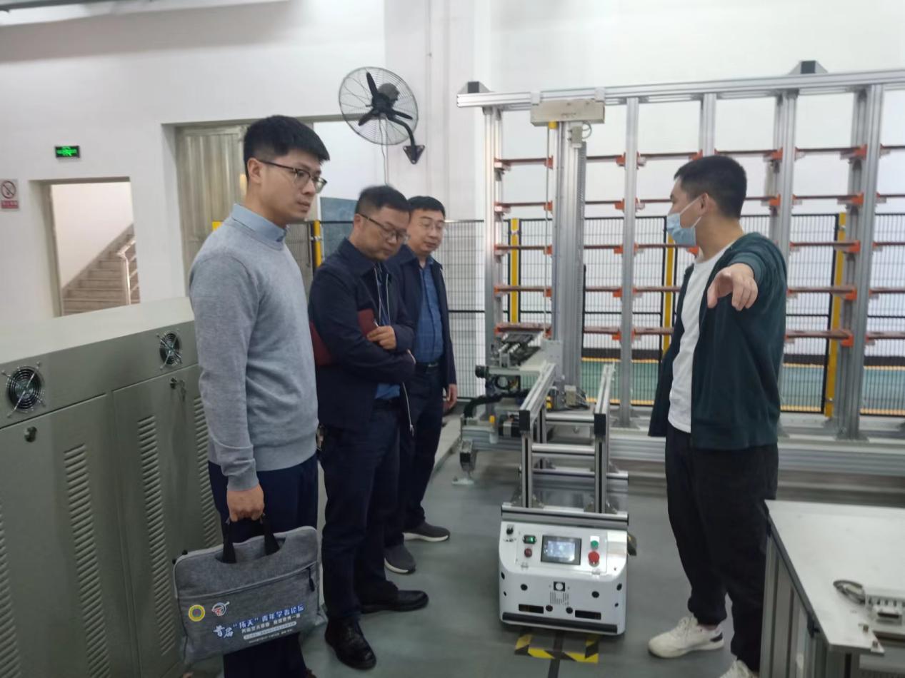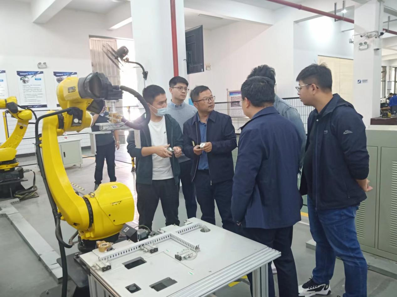 在湖南城市学院工程训练中心,机械与电气工程学院副院长黄志亮介绍了他们的学科发展及实验室建设情况,实验室主任马小林带领调研组一行参观了智能制造生产线、柔性制造系统综合实验室、加工中心等实验室,详细介绍了实验室课程开设及学生工程实训情况。参观过程中,双方就实验室建设、工程实训、学科竞赛等方面进行了深入交流。