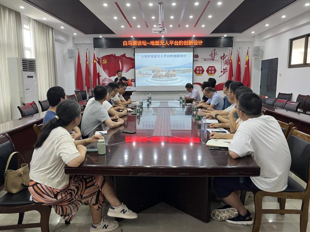 首先,院长曾斌对徐小军教授莅临我院做学术报告表示热烈欢迎,并向在座师生详细介绍了徐教授的科研经历。随后,徐小军教授开门见山,直接引出本次报告的主题——地面无人平台的创新设计。徐教授系统介绍了地面无人平台的动力、内容、案例及发展趋势,特别在案例部分,详细介绍了自己课题团队所研究的球形机器人、四连杆变形履带机器人、轮履机器人等研究成果及其应用前景。徐教授的报告内容丰富且具有代表性,激发了大家对地面无人平台领域的兴趣与热情,会后徐教授与师生围绕地面无人平台方面的话题进行了广泛地交流与讨论,本次讲座为学院教师拓展教学与科研视野提供了新思路。