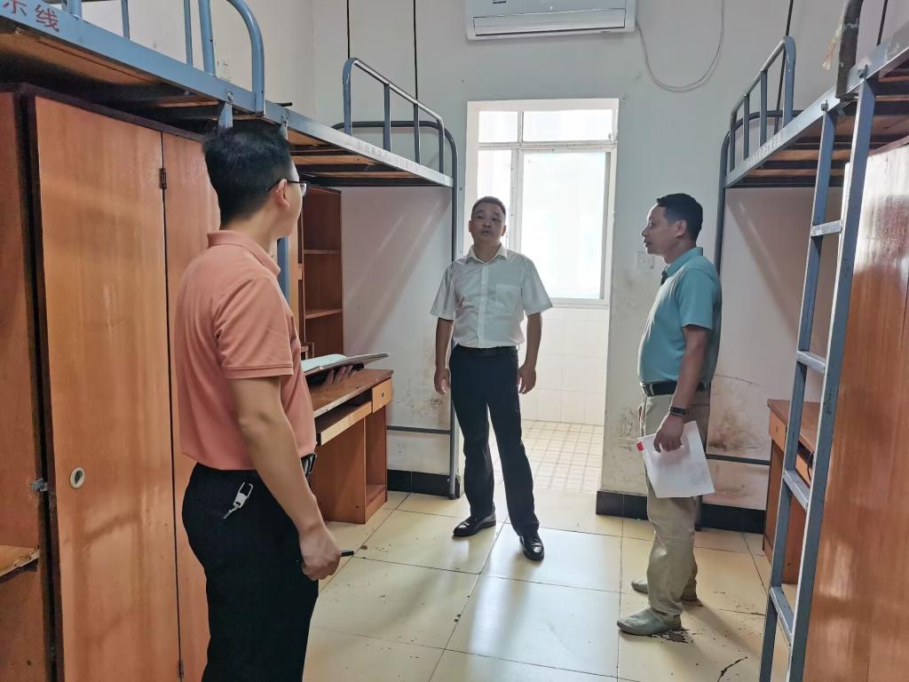 每到一间宿舍,郭杰荣都对地面、墙面以及水电、洗漱间等重点部位进行了认真的检查,如果发现问题,就叮嘱随行人员要做好记录,立即处理。