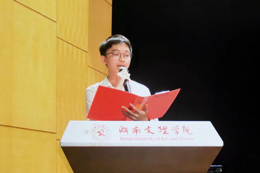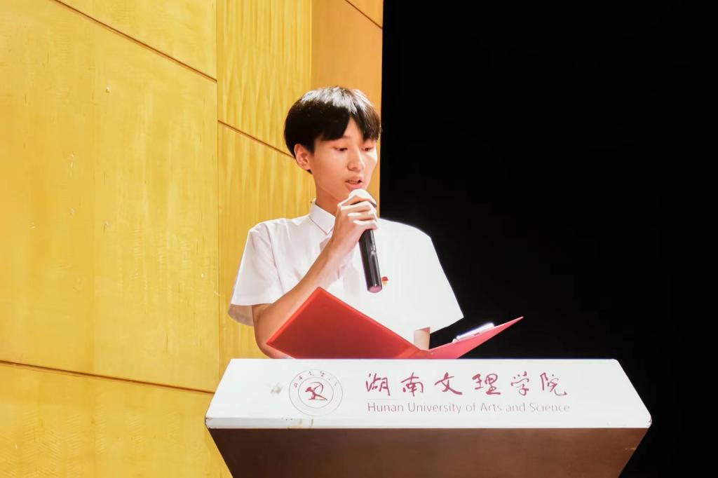 新生代表机自23105班王凡闻代表全体新生发言,他表示,自己能突破重围,考入湖南文理学院机械工程学院,是幸运的。在今后的学习生活中,他一定和全体2023级新生一道,尽快转变角色,适应大学新生活,争做有理想,有信念的青年大学生;一定努力学习好专业知识,练就扎实本领,争做有扎实学识的青年;一定严格要求自己,树立规范意识,争做有责任担当的青年大学,担负起强国兴民的责任与担当,排除万难,奔赴梦想,用奋斗书写青春篇章!