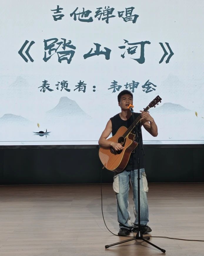 活动在韦坤金同学的吉他弹唱《踏山河》中拉开帷幕。