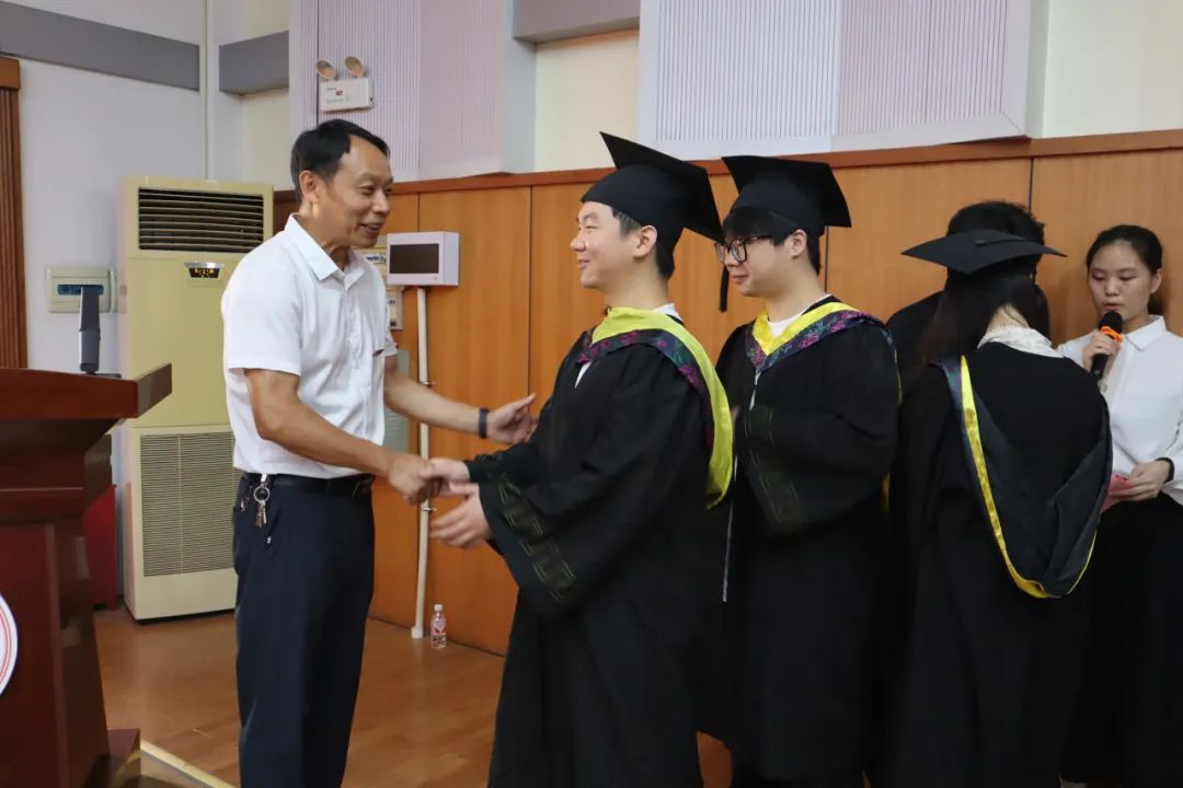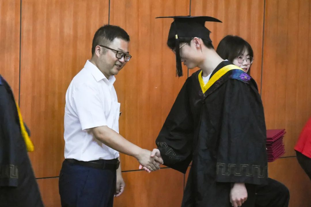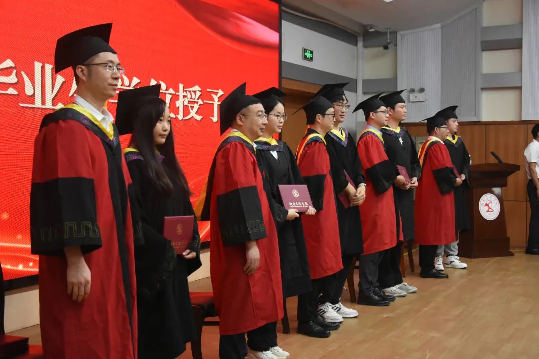 院党委委员、副院长尹亮宣读了学位授予决定,标志着毕业生们即将迈向人生新阶段。在学位授予环节,毕业生们分批上台,导师为他们颁发学位证书并拨穗。每次5名同学上台,整个过程井然有序,洋溢着庄重与喜悦。