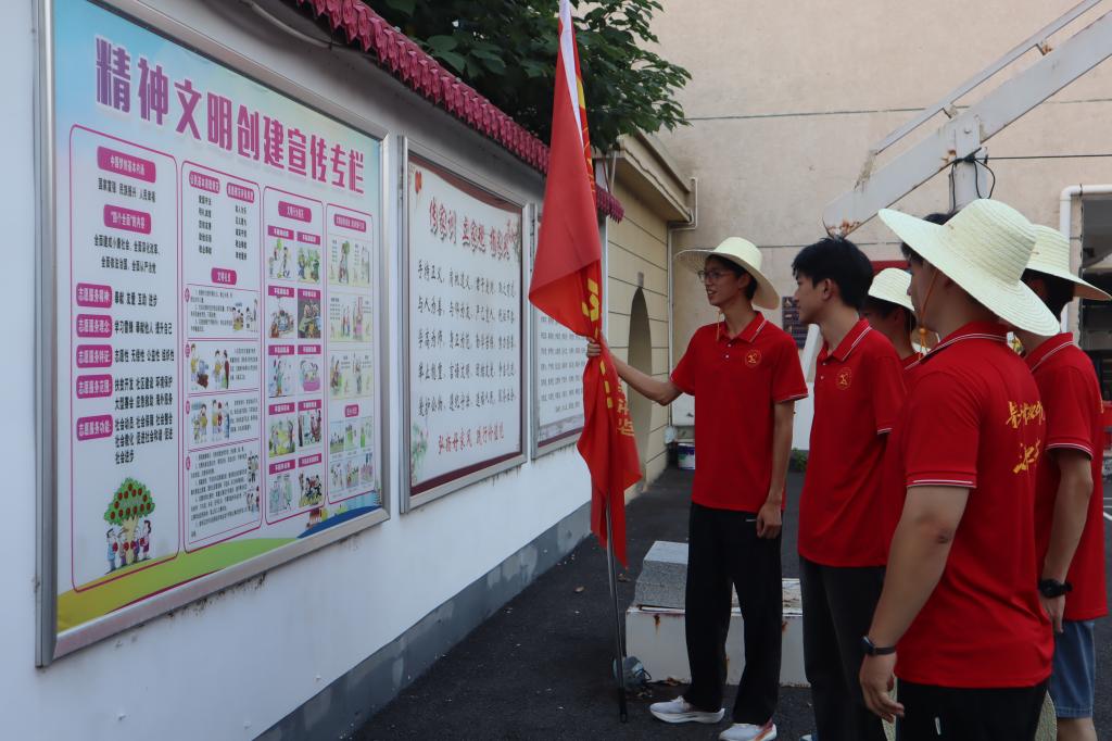 午后,实践团开启沉浸式调研之旅。在带队指导老师谢袁芬的带领下,同学们首先来到村委会的“村规民约墙”前。墙上的条文虽简洁,却字字透着乡村的治理智慧,也展示了村民们的文明素养和对美好生活的向往。带着对村规的理解,实践团成员们沿着村道开始实地走访。我们驻足参观了祝丰镇2025年生产(早专晚优)综合示范片涂家湖村示范区域,让同学们切身感受到现代农业的发展成就。村道两旁绿树成荫,农家院落整洁美观,一幅生态宜居的美丽乡村画卷徐徐展开。