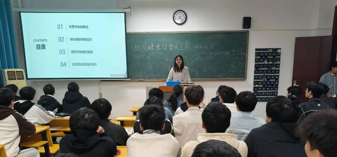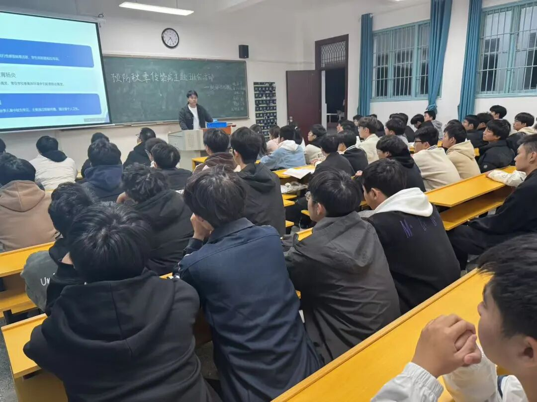 本网讯:秋意渐浓,传染病进入高发期。为进一步增强同学们的健康防护意识,营造安全、健康的校园环境,10月22日晚7点,机械工程学院组织2025级各班级开展了“预防秋季传染病”主题班会。本次活动由院学生宿管安信部组织,年级辅导员艾丹枫老师到场参加并作总结强调。