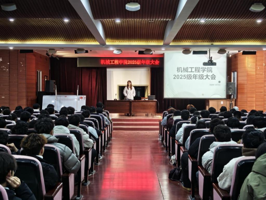 本网讯:近日,为进一步强化学风建设,明确不同年级奋斗目标,落实立德树人根本任务,机械工程学院面向全院各年级、不同专业召开了2026年春季学期学情分析暨学风建设大会。会议围绕学情分析、考研动员、就业指导三大板块,结合专业特点精准施策,为同学们带来“干货满满”的开学第一课。