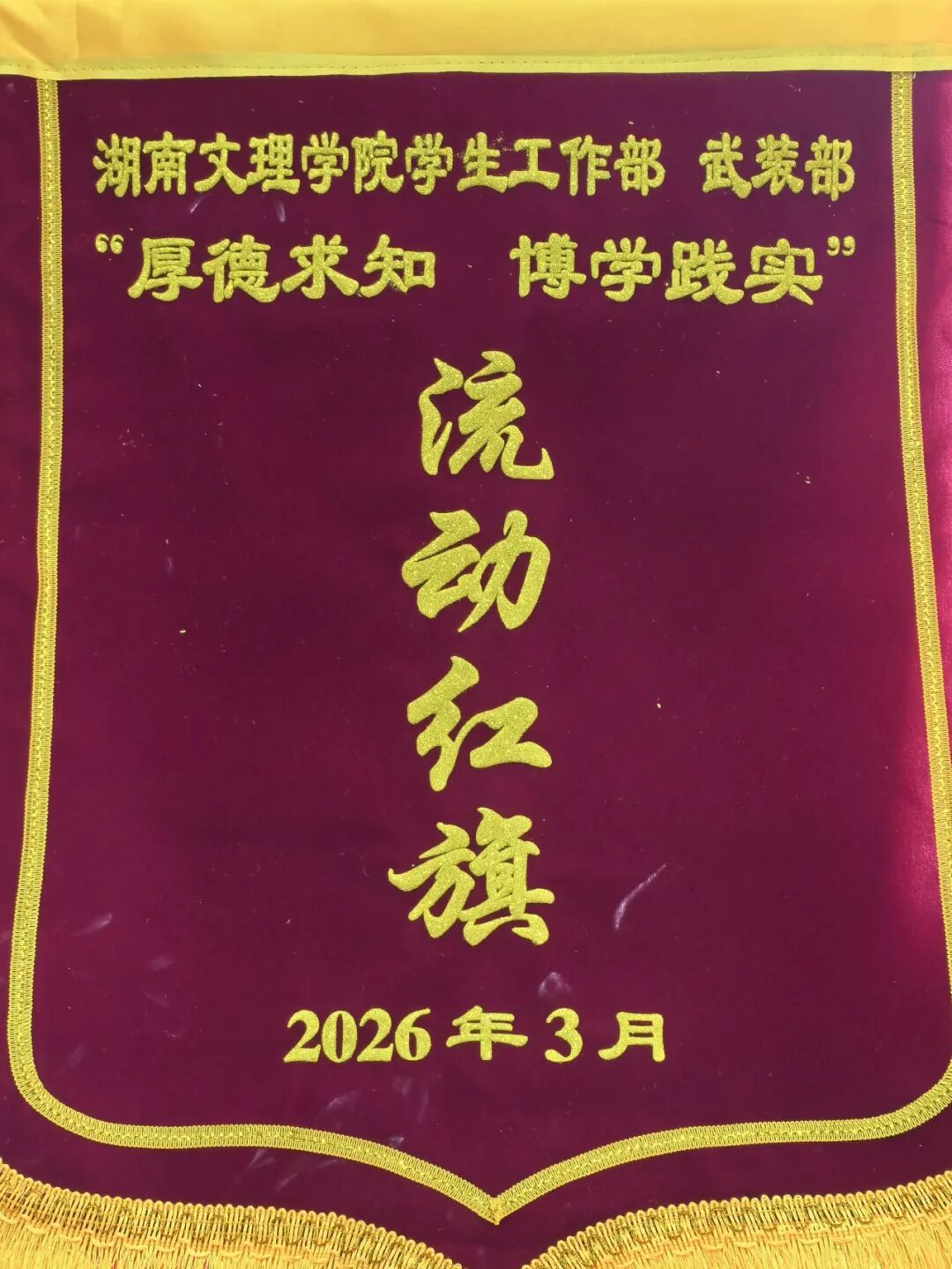 本网讯:经过全院师生的共同努力与团结协作,我院在湖南文理学院2026年春季学期第一次“厚德求知 博学践实”流动红旗评比中,以优异成绩荣获全校第一名。