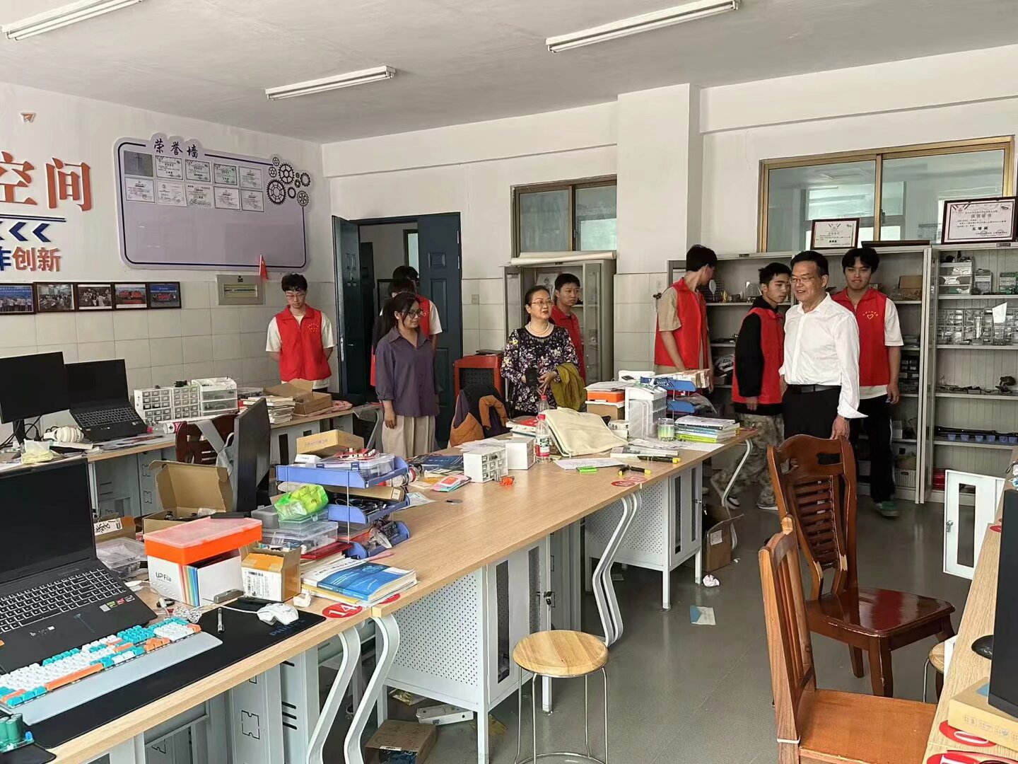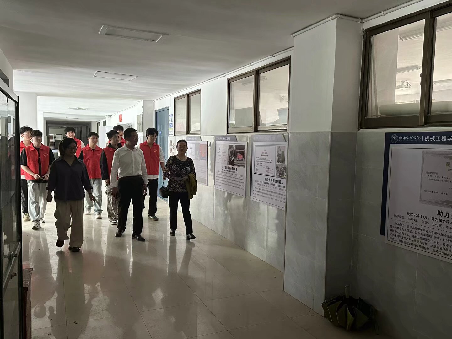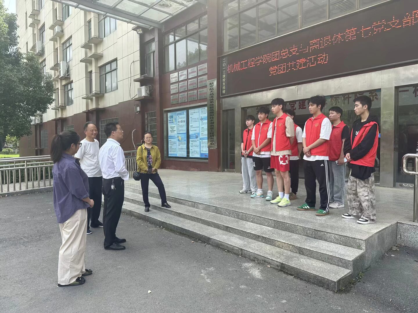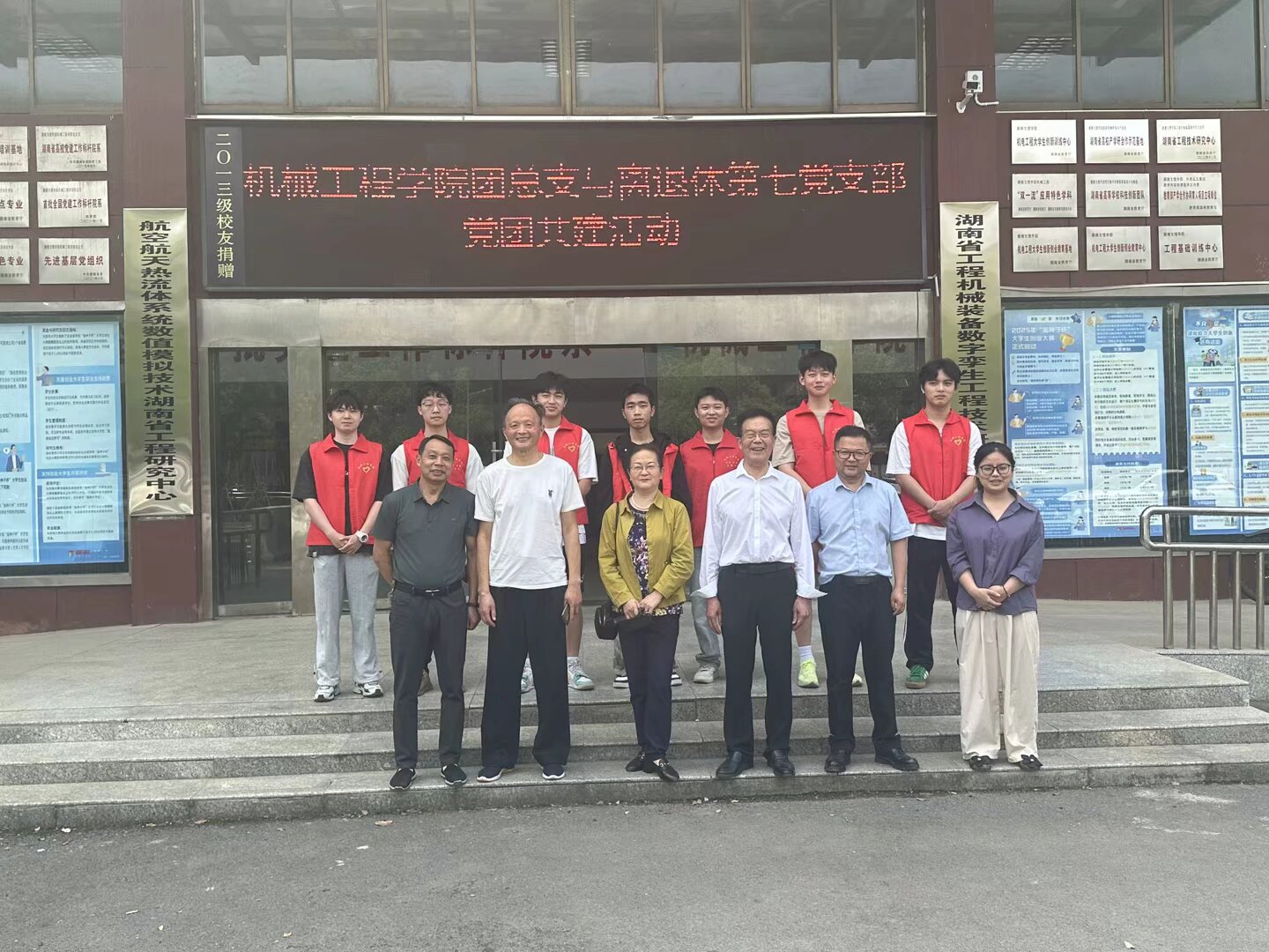2025年4月17日上午,我校离退处第七党支部肖兴明、刘文清、罗烈雷三位老师莅临机械工程学院。学院党委书记邵启湖、院长曾斌、团总支书记郑雅方热情接待,并带领院团支部学生共同开展了党团对接活动。此次活动旨在加强党团联系,推动校园节约文化建设,同时为学生成长提供指导和建议。