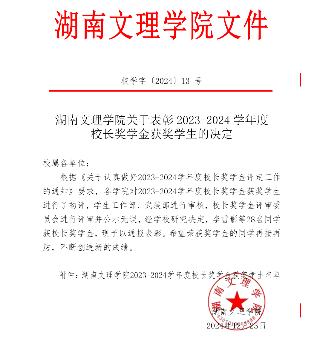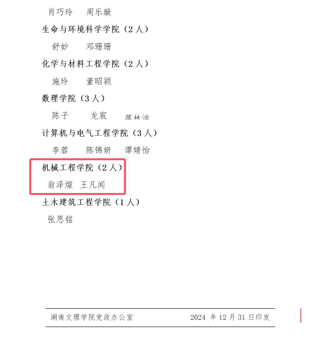 在2023-2024学年度湖南文理学院校长奖学金评选中,我院学生翁泽煊、王凡闻表现出色,获此荣誉!