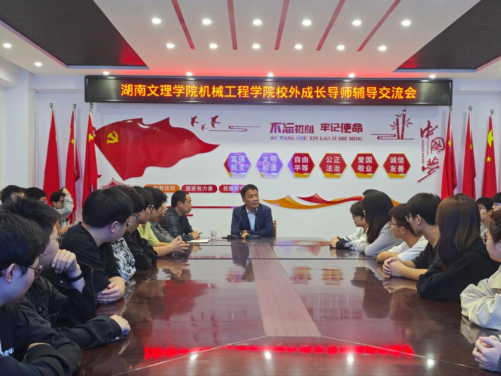 本网讯:为深入推进大学生创新创业教育工作,营造浓厚育人氛围,助力学生拓展视野、启迪思维、提升创新创业能力,10月17日下午,机械工程学院在机械楼B401组织开展了校外成长导师辅导交流会。本次活动特邀我院2000届机电专业优秀校友、2023级校外成长导师、深圳市普菲特精密制品有限公司董事长熊胤铭担任主讲。