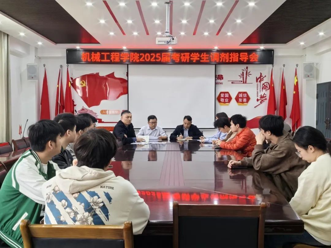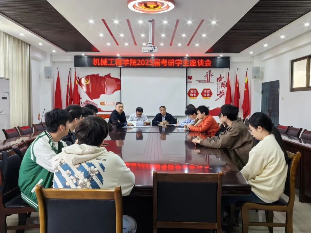 2025年4月8日,机械工程学院在机械楼B401会议室举办了2025届考研学生座谈会暨考研复试调剂指导会。此次会议旨在为考研学子提供全方位指导,助力他们在考研复试调剂过程中取得顺利。院党委书记邵启湖、院长曾斌、党委副书记何忠祥、辅导员艾丹枫以及2021级参加考研复试调剂学子参会。