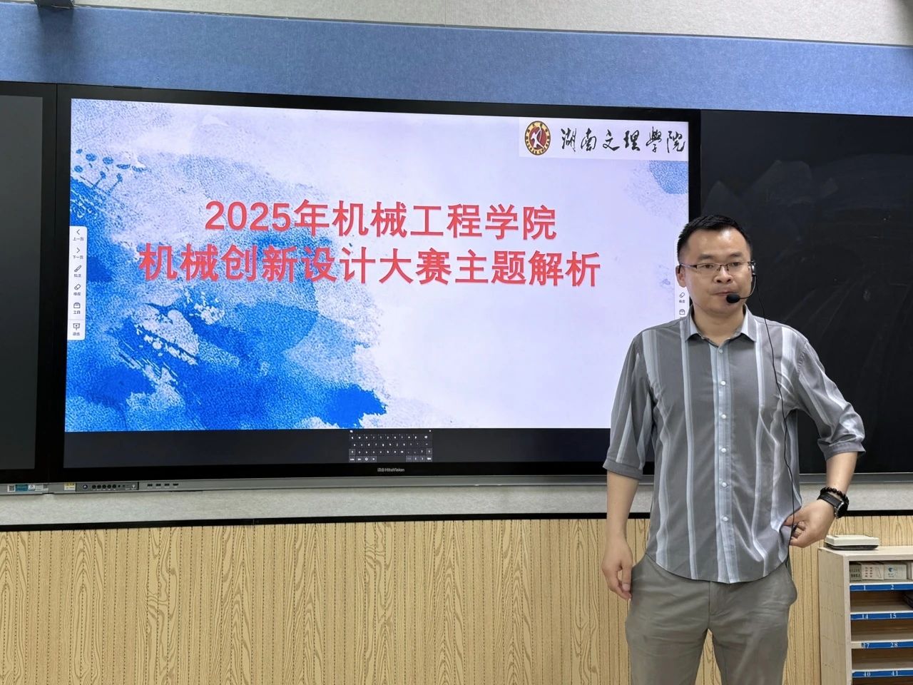 动员会上,苏思超老师对2025年机械创新设计大赛主题进行了详细介绍,并强调了创新设计在机械工程领域的重要性。他结合往届优秀案例,强调“以赛促学、以赛促创”的育人理念。“湖南省机械创新设计大赛不仅是展示专业技能的平台,更是检验团队协作与工程实践能力的试金石”,苏思超鼓励同学们把握机会,充分利用学院提供的实验设备和老师的指导,打造具有竞争力的参赛作品。