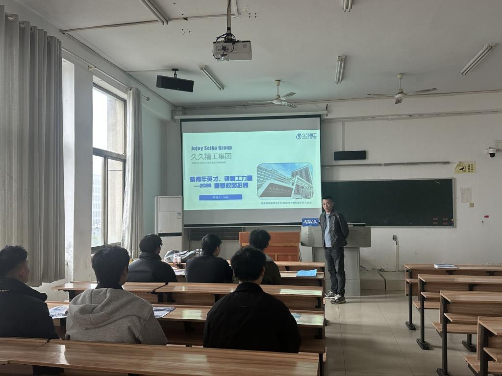 本网讯:3月20日上午,久久精工集团专场宣讲会在我院601教室举行。作为华南区具有影响力的智能制造自动化方案集成商,久久精工集团此次面向我院2026届毕业生提供了电气助理工程师、机械助理工程师、项目助理等多个优质岗位,吸引了不少2026届毕业生到场参与。